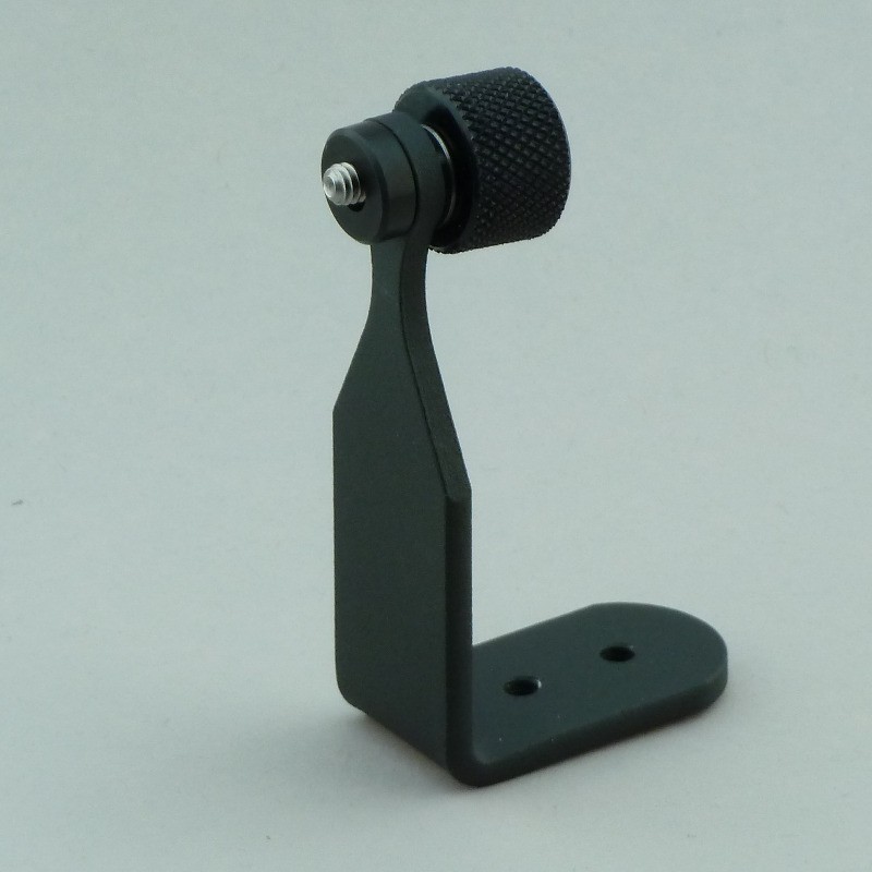 1/4"-20 right angle adapter for camera tripod to binoculars. Hand knob retainer.