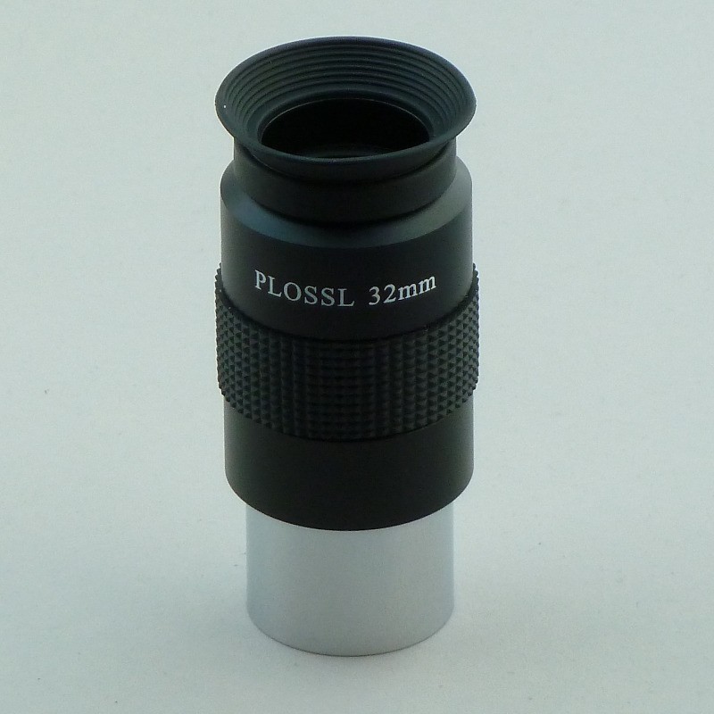 This 1.25" 32mm Plossl with 52 degrees apparent field and symmetrical design has low aberrations and great color correction, making it a good choice for lunar-planetary and general use. Although limited in field of view, the single airspace enhances it's contrast performance. Fully multicoated. Includes eyeshield and rubber grip.